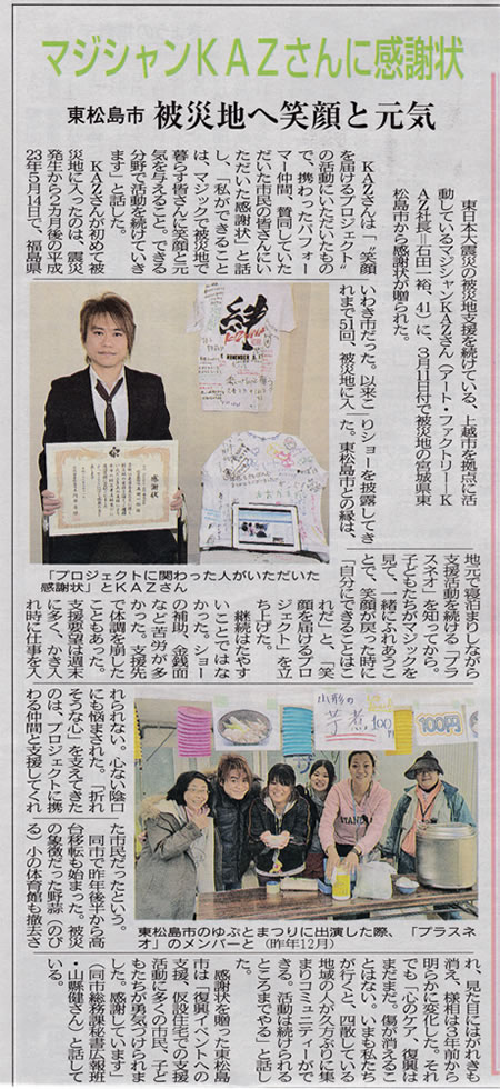 マジシャンとして世界的な賞を受賞し、ハリウッド映画イメージキャラクターを務め、大舞台でも活躍の、新潟県出身のプロマジシャンであるマジシャン・カズ(Magician-KAZ)の公式ホームページです。 学校など教育現場でのショー、学校公演、学校講演会などもお受けいたします。 忘年会・新年会・納涼会や、お祭りや町おこしなどで、マジックショーやジャグリング、大道芸、ピエロショー、似顔絵やフェイスペイントなど、楽しいイベントの出演・プロデュースを、お受けいたします。 ステージマジック、イリュージョンマジック、クローズアップマジック、テーブルマジック、ストリートマジック、マジック教室から各種イベントプロデュースまで、「驚き」「笑い」「楽しい」「感動」の時間の演出ならおまかせください!
